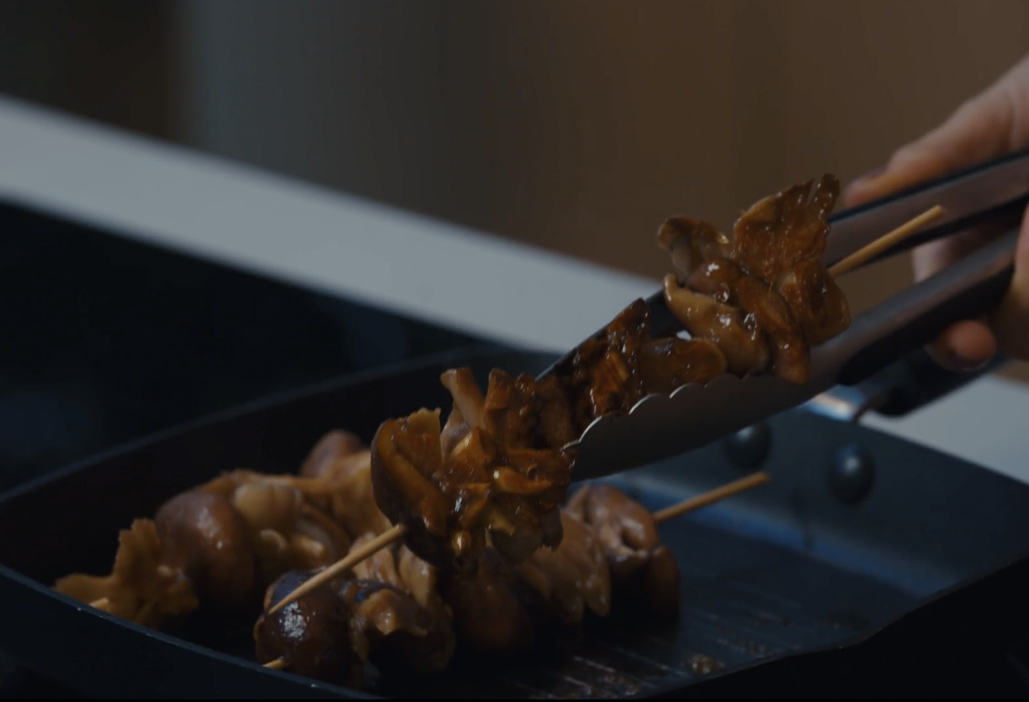 In this lesson, we’re using mushroom skewers to practise cooking with high, dry heat on a griddle pan.